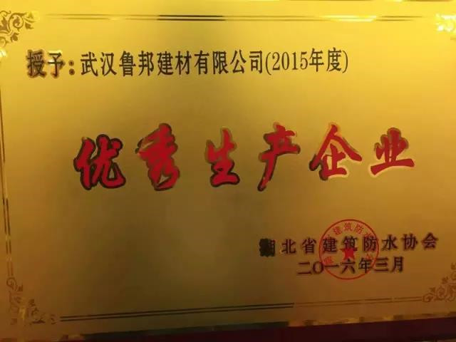 湖北建筑防水協(xié)會(huì)授予魯邦防水“優(yōu)秀生產(chǎn)企業(yè)”