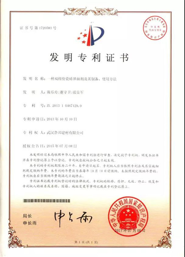 本發(fā)明的目的在于克服因現(xiàn)有瓷磚特別是?;u因吸水率低、界面光滑導(dǎo)致瓷磚脫落的問(wèn)題,提供一種改善瓷磚界面性能和施工性能的雙組份瓷磚界面劑,提高了界面劑與瓷磚粘結(jié)強(qiáng)度。另外,在保證施工時(shí)間的同時(shí),縮短了凝固時(shí)間,有效改善了施工性能,并保證了瓷磚的長(zhǎng)期美觀性。