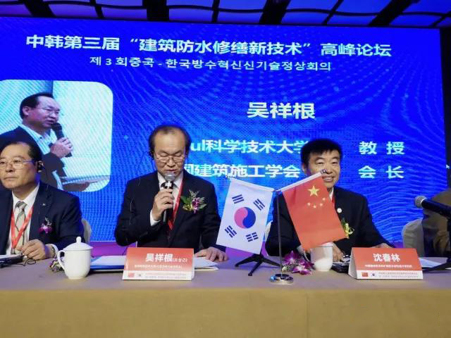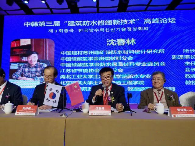 本次會(huì)議以“建筑防水修繕新技術(shù)”為主題,會(huì)議匯集中、韓兩國防水大咖齊聚一堂,韓國首爾科技大學(xué)吳祥根教授一行28位韓國防水專家蒞臨會(huì)議交流。中國建材蘇州非礦院防水材料設(shè)計(jì)研究所所長,湖北工業(yè)工業(yè)大學(xué)碩士生導(dǎo)師,享受國務(wù)院特殊津貼著名防水專家沈春林教授、韓國首爾科技大學(xué)防水技術(shù)研究中心吳祥根教授及國家相關(guān)部門領(lǐng)導(dǎo)先后發(fā)表重要講話,通過對(duì)當(dāng)前我國建筑防水修繕行業(yè)的分析,指出此次會(huì)議召開的重要性和必要性,并希望通過此次會(huì)議的召開,充分調(diào)動(dòng)防水人的積極性,重新樹立對(duì)防水行業(yè)未來市場(chǎng)的信心并致力于將防水修繕市場(chǎng)做的更好。