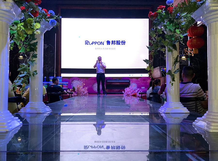 魯邦董事長王斌、總經(jīng)理李時(shí)鋒、魯邦副總經(jīng)理、佛山分公司總經(jīng)理張中華  魯邦副總經(jīng)理高艷生  魯邦市場部萬春順經(jīng)理,近二百個各地的魯邦經(jīng)銷商一起見證了魯邦建材贛州運(yùn)營中心的開業(yè)活動。