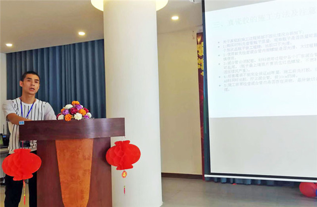 技術(shù)部劉軼麟先生在會(huì)上對公司原有產(chǎn)品的改良做了詳細(xì)的講解說明,同時(shí)發(fā)布了新的產(chǎn)品,還對各種產(chǎn)品施工的細(xì)節(jié)與大家做了交流探討。